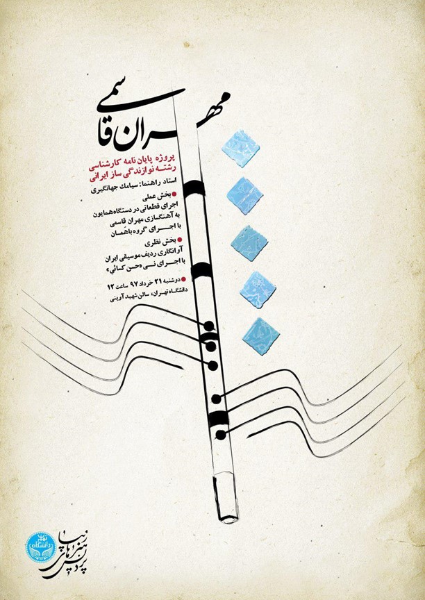 - ساخت و اجرای یک مجموعه قطعه برای گروه سازهای ایرانی به عنوان بخش عملی پایان نامهی کارشناسی.